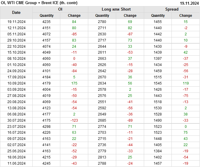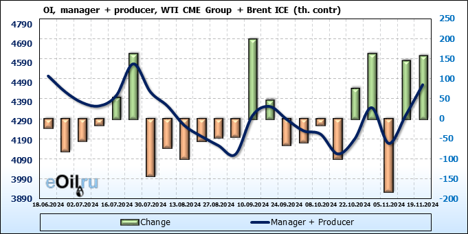 Brent+WTI. Открытый интерес на 23 ноября 2024