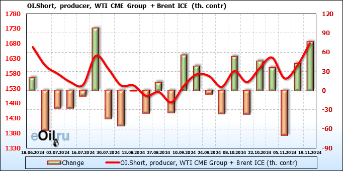 За неделю разница между длинными и короткими позициями производителей увеличилась на 17 тыс. контрактов.
