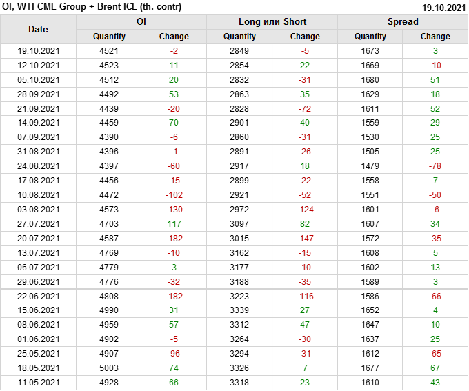 Brent+WTI. Открытый интерес на 23 октября 2021