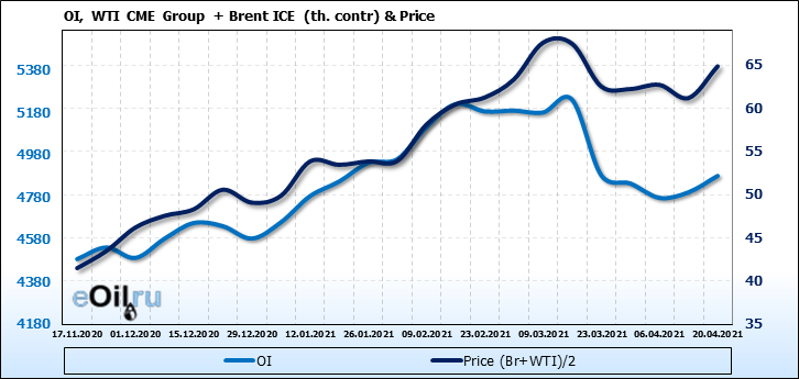 Brent+WTI. Открытый интерес на 24 апреля 2021
