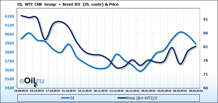 Brent+WTI. Открытый интерес на 24 февраля 2024
