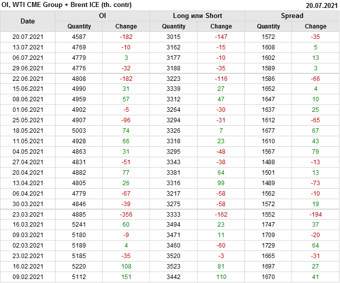 Brent+WTI. Открытый интерес на 24 июля 2021