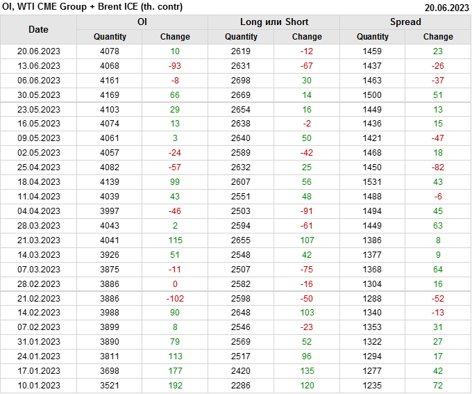 Brent+WTI. Открытый интерес на 24 июня 2023