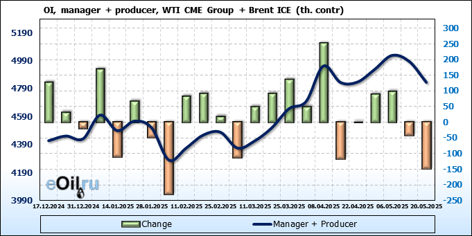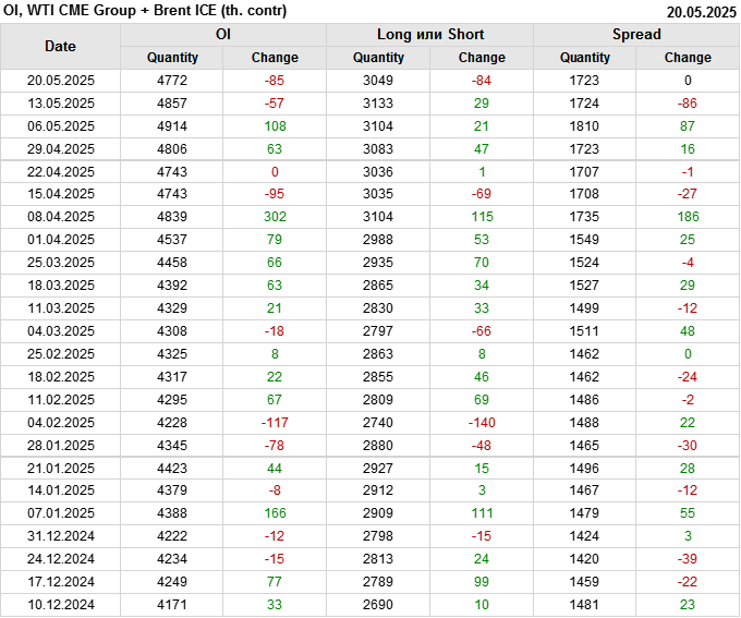 Brent+WTI. Открытый интерес на 24 мая 2025