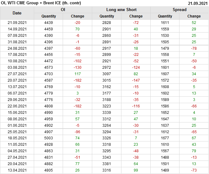 Brent+WTI. Открытый интерес на 25 сентября 2021