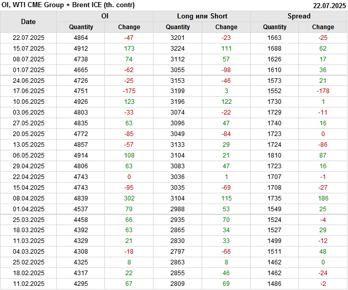 Brent+WTI. Открытый интерес на 26 июля 2025