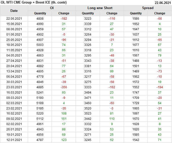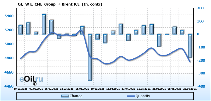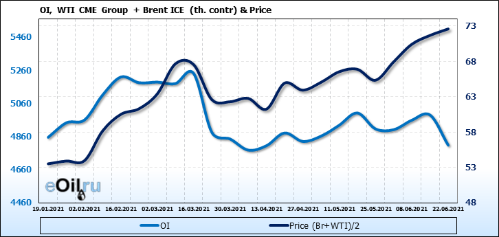 Brent+WTI. Открытый интерес на 26 июня 2021