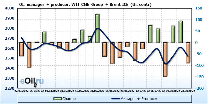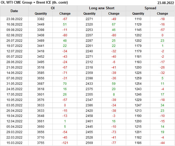 Brent+WTI. Открытый интерес на 27 августа 2022