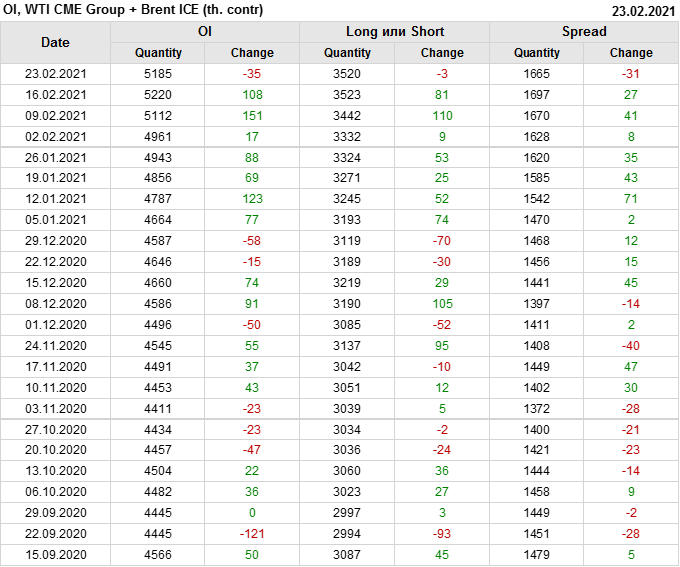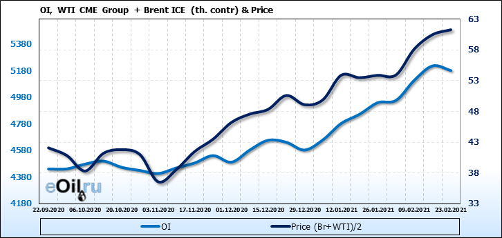 Brent+WTI. Открытый интерес на 27 февраля 2021