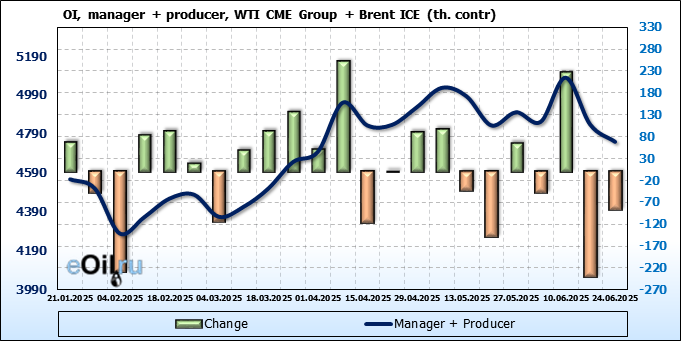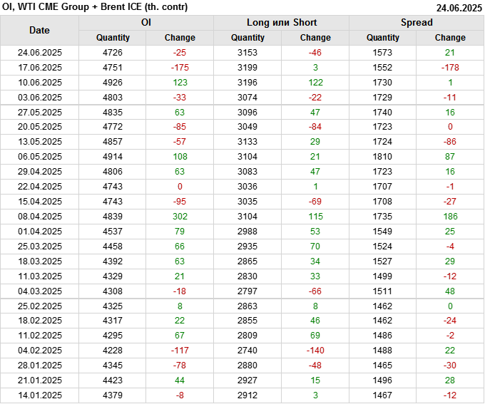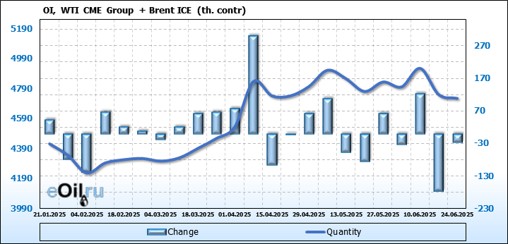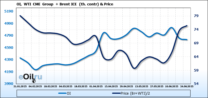 Brent+WTI. Открытый интерес на 28 июня 2025