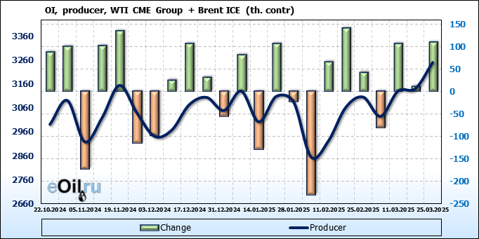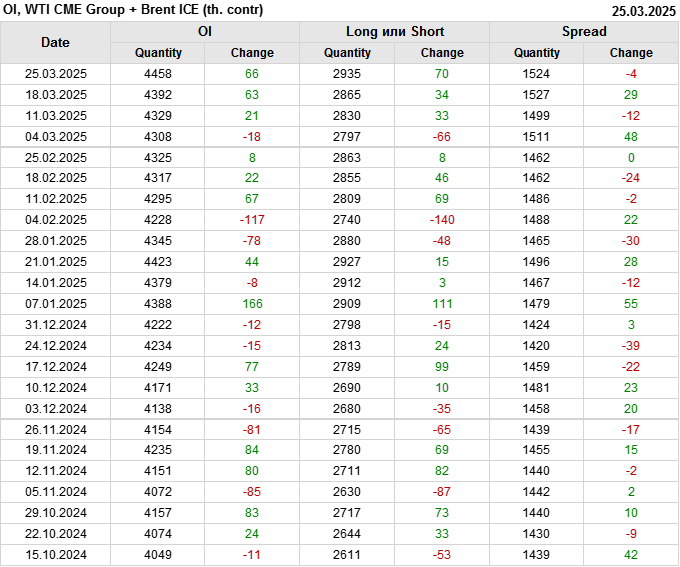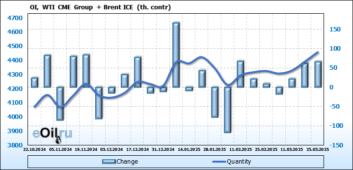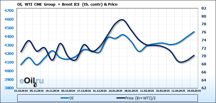 Brent+WTI. Открытый интерес на 29 марта 2025