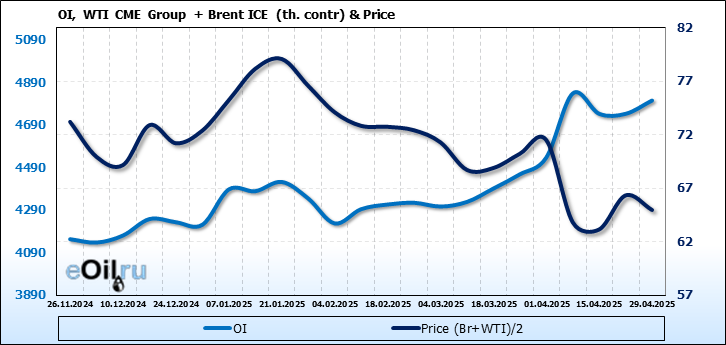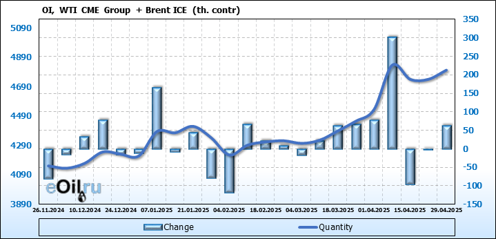 Brent+WTI. Открытый интерес на 3 мая 2025