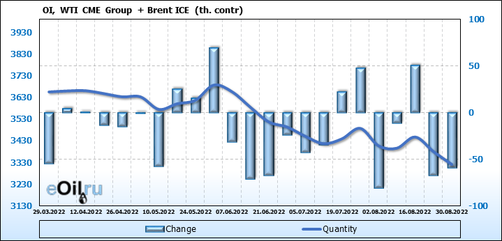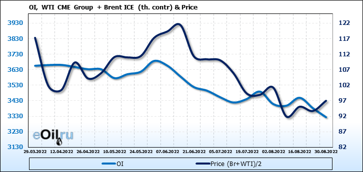 Brent+WTI. Открытый интерес на 3 сентября 2022