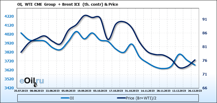 Brent+WTI. Открытый интерес на 30 декабря 2023
