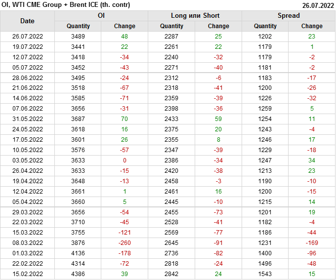Brent+WTI. Открытый интерес на 30 июля 2022
