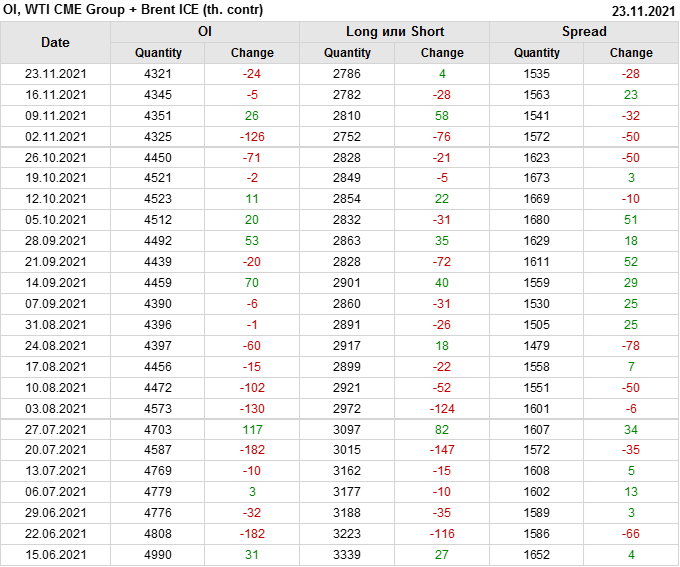 Brent+WTI. Открытый интерес на 30 ноября 2021
