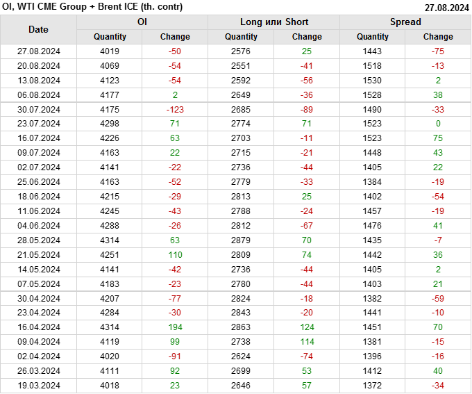 Brent+WTI. Открытый интерес на 31 августа 2024