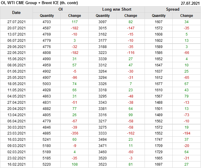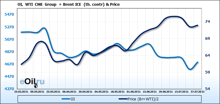 Brent+WTI. Открытый интерес на 31 июля 2021