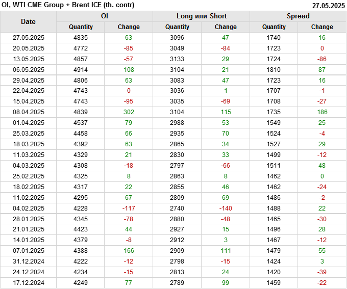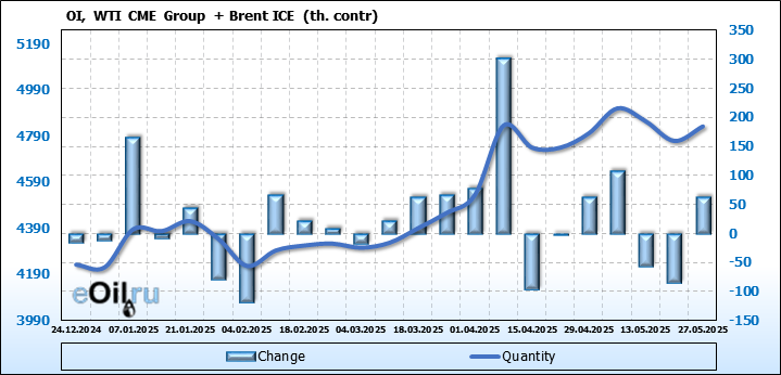Brent+WTI. Открытый интерес на 31 мая 2025