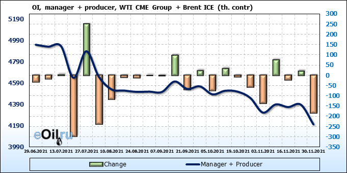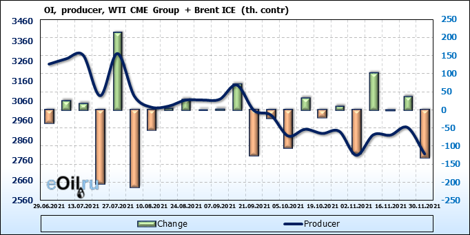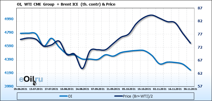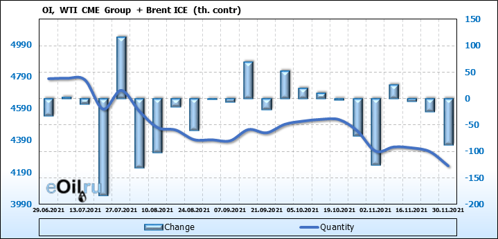 Brent+WTI. Открытый интерес на 4 декабря 2021