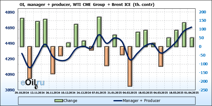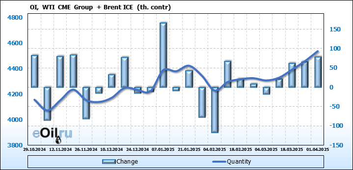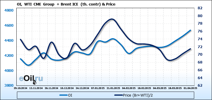 Brent+WTI. Открытый интерес на 5 апреля 2025