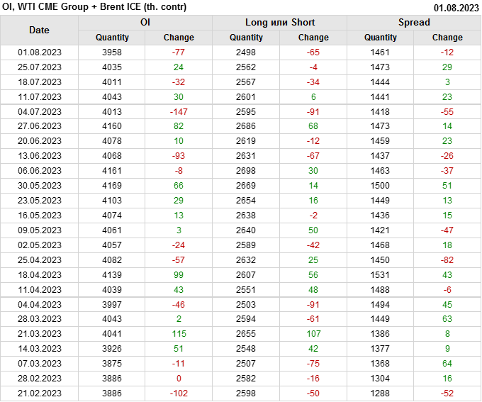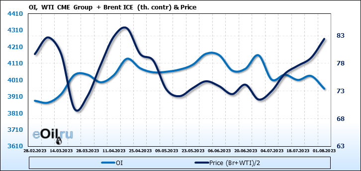 Brent+WTI. Открытый интерес на 5 августа 2023