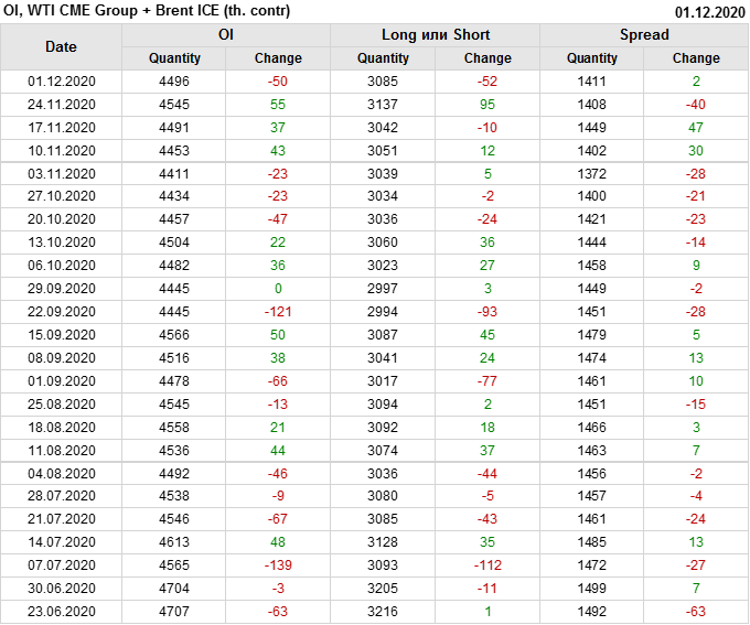 Brent+WTI. Открытый интерес на 5 декабря 2020