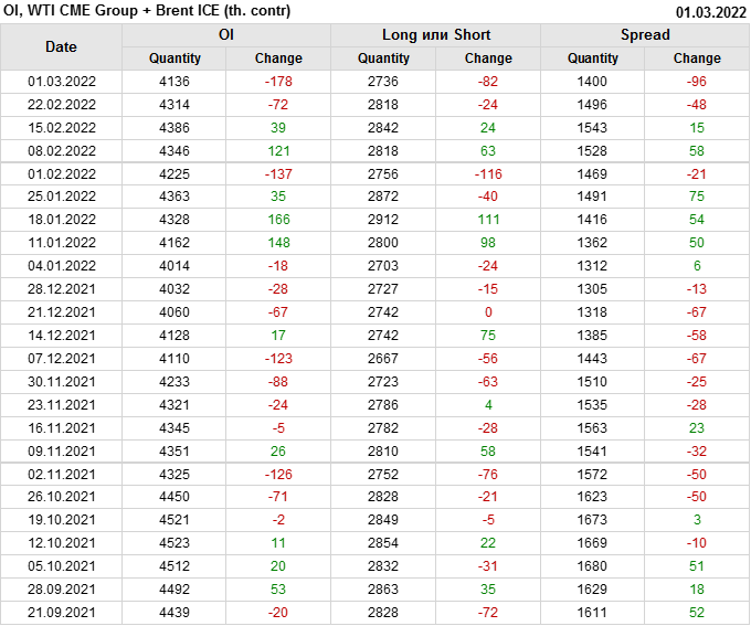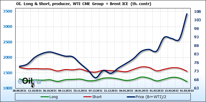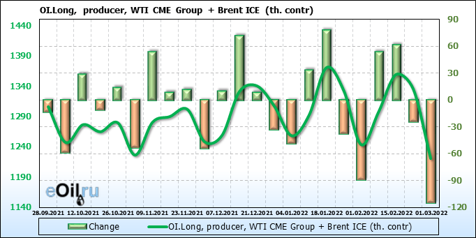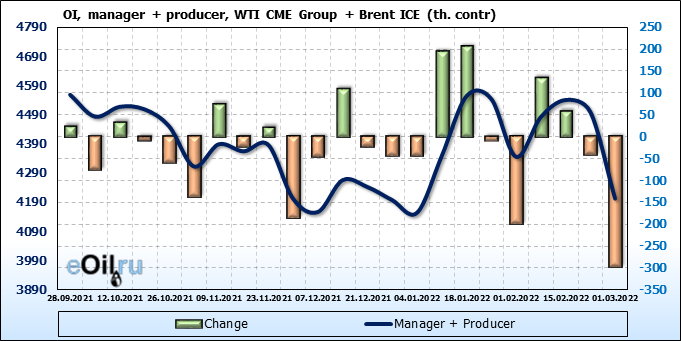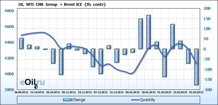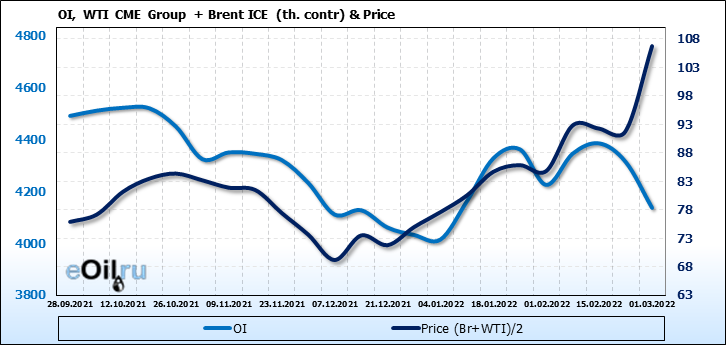 Brent+WTI. Открытый интерес на 5 марта 2022