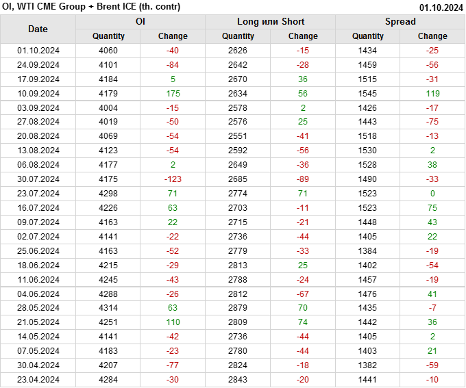 Brent+WTI. Открытый интерес на 5 октября 2024