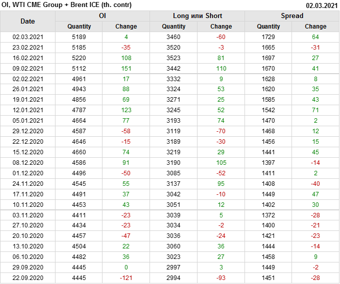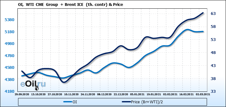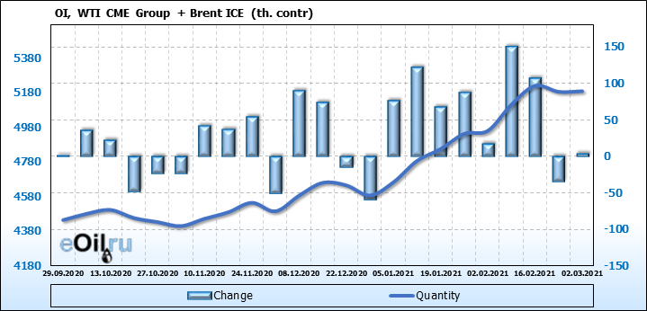Brent+WTI. Открытый интерес на 6 марта 2021