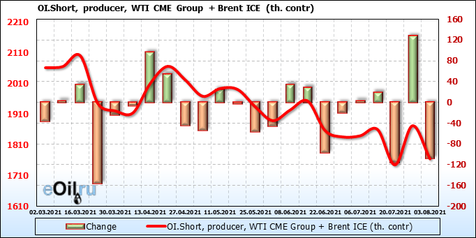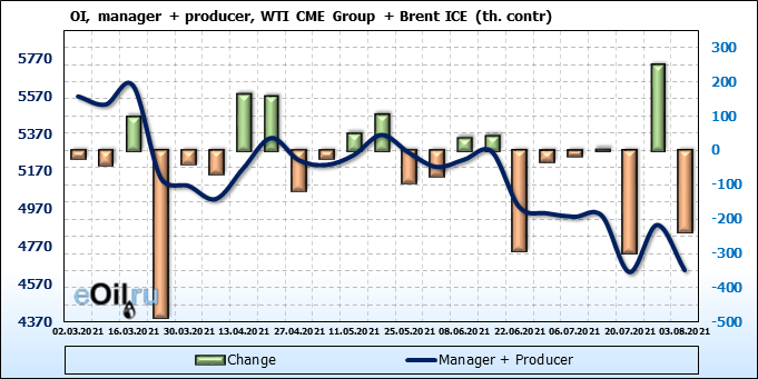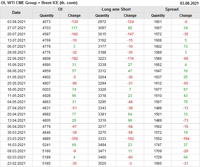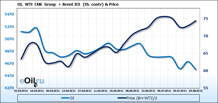 Brent+WTI. Открытый интерес на 7 августа 2021