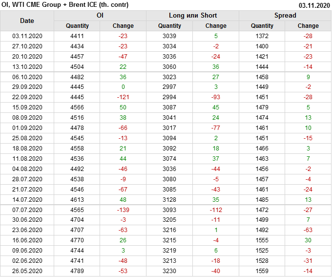 Brent+WTI. Открытый интерес на 7 ноября 2020