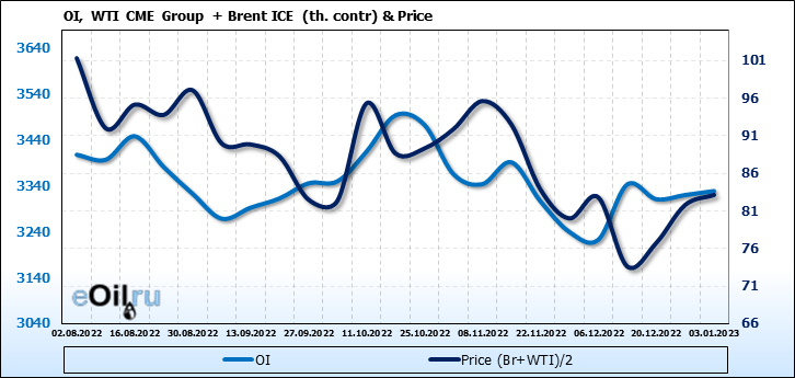 Brent+WTI. Открытый интерес на 7 января 2023