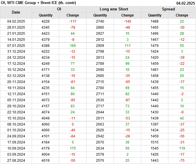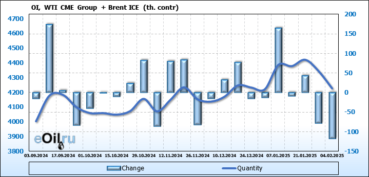 Brent+WTI. Открытый интерес на 8 февраля 2025