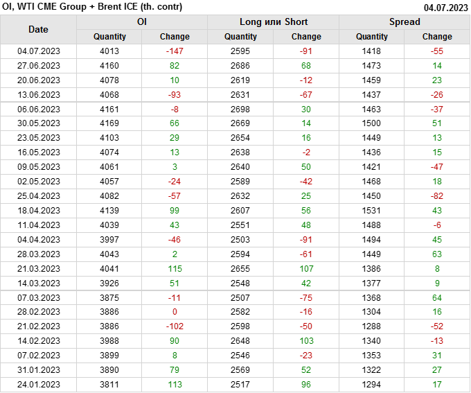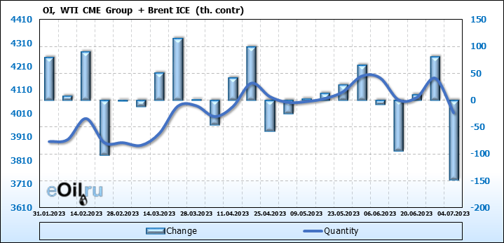 Brent+WTI. Открытый интерес на 8 июля 2023