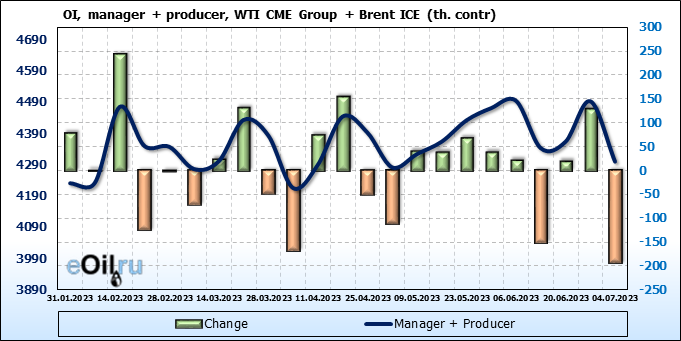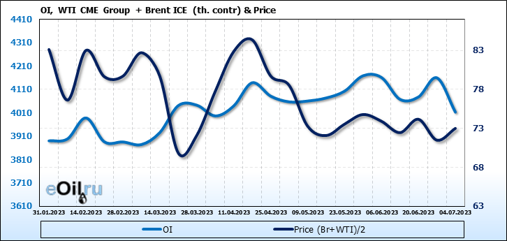 Brent+WTI. Открытый интерес на 8 июля 2023