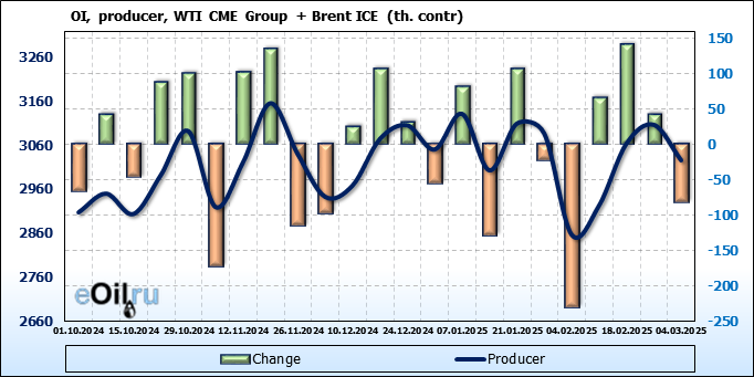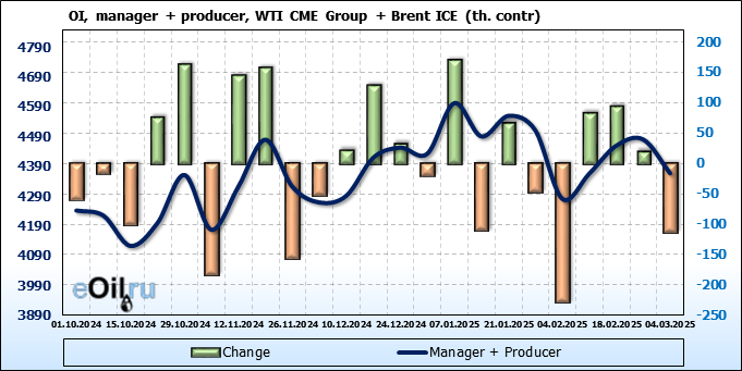 Brent+WTI. Открытый интерес на 8 марта 2025