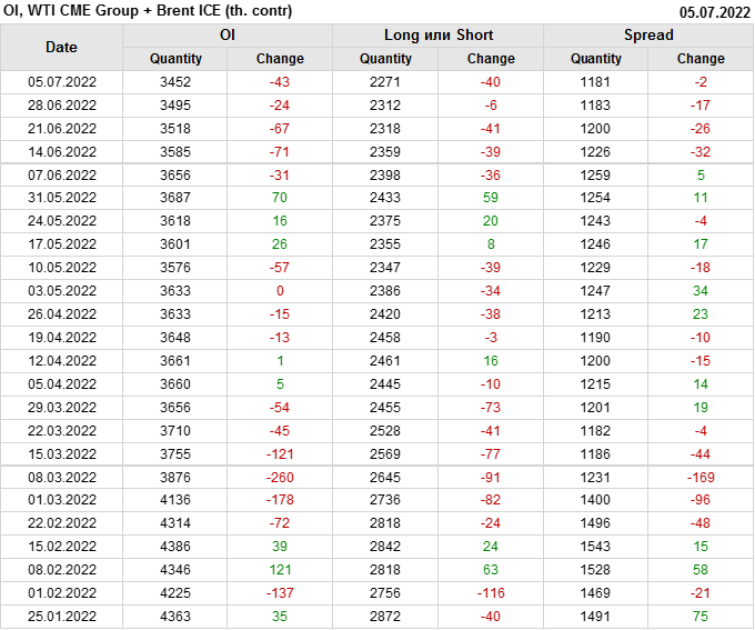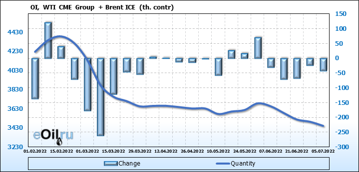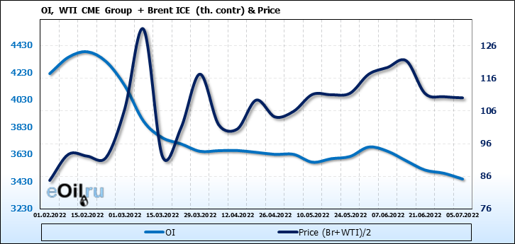 Brent+WTI. Открытый интерес на 9 июля 2022