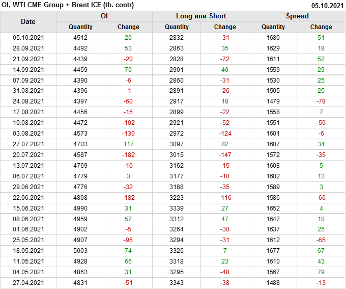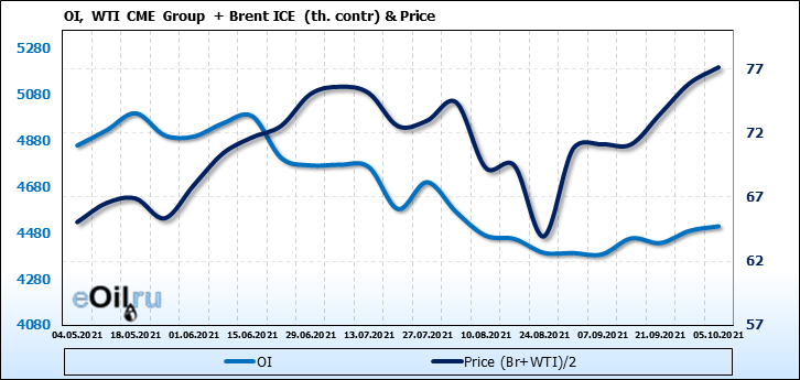 Brent+WTI. Открытый интерес на 9 октября 2021