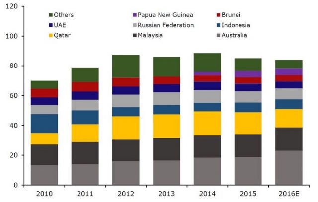 Важнейшими поставщиками сжиженного природного газа в Японию являются Катар, Малайзия и Австралия. В период с 2010 по 2012 годы импорт из Катара удвоился, но с 2013 по 2016 годы снизился на 25%.