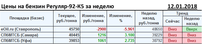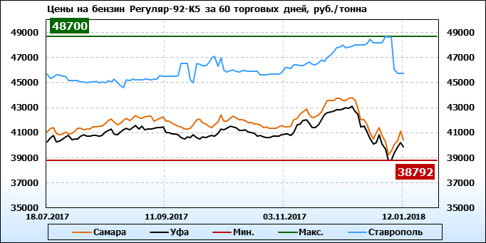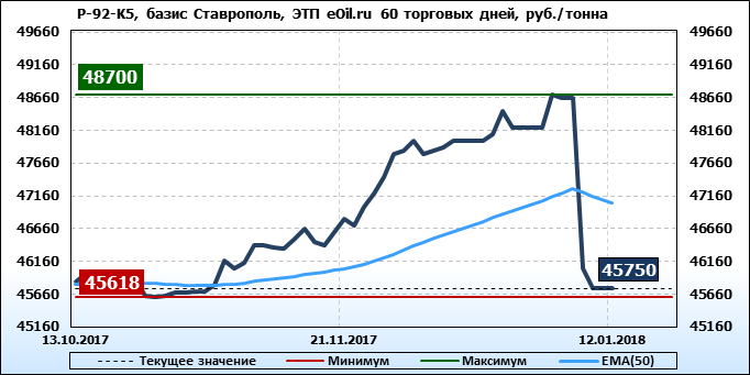 Цены на бензин. Р-92-К5, Ставрополь, ЭТП eOil.ru. Данные на 12.01.2018