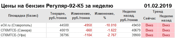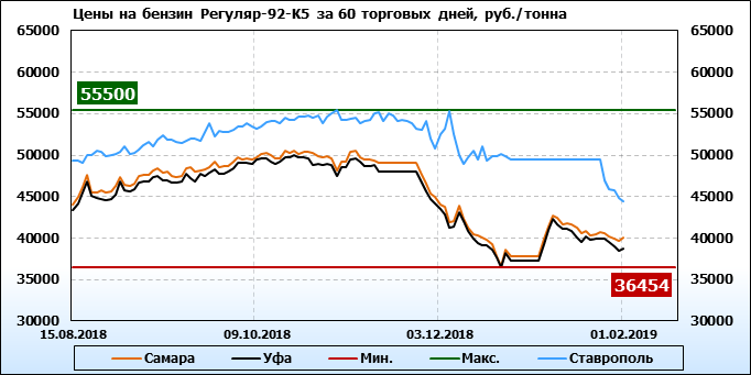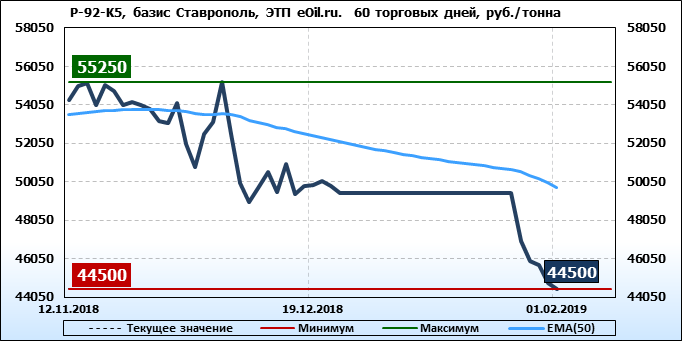 Цены на бензин. Р-92-К5, базис Ставрополь, ЭТП eOil.ru. Данные на 01.02.19
