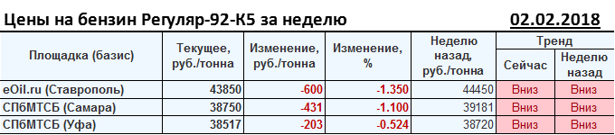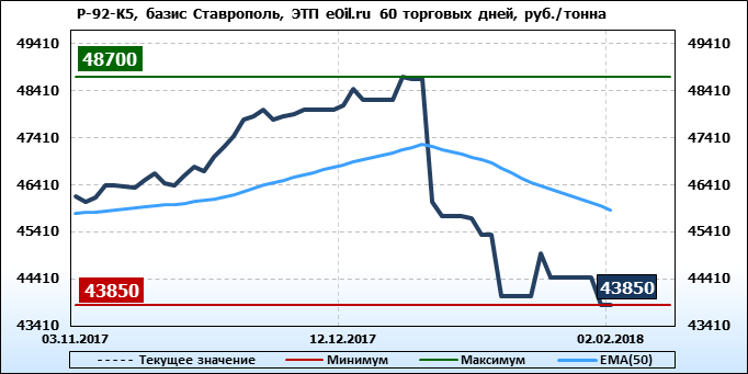 Цены на бензин. Р-92-К5, базис Ставрополь, ЭТП eOil.ru. Данные на 02.02.2018