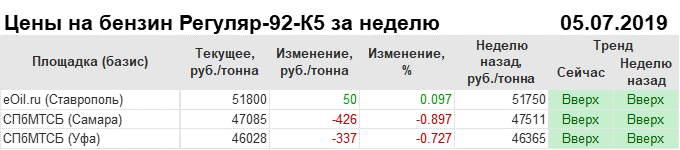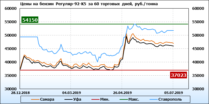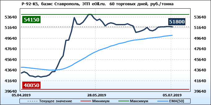 Цены на бензин. Р-92-К5, базис Ставрополь, ЭТП eOil.ru. Данные на 05.07.19