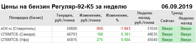 Цены на бензин. Р-92-К5, базис Ставрополь, ЭТП eOil.ru. Данные на 06.09.19