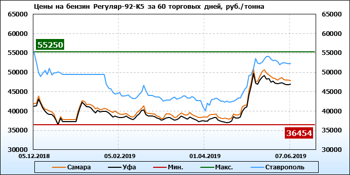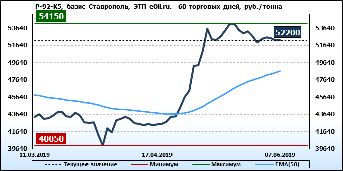 Цены на бензин. Р-92-К5, базис Ставрополь, ЭТП eOil.ru. Данные на 07.06.19