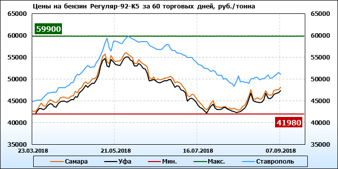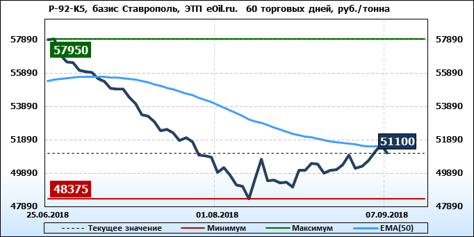 Цены на бензин. Р-92-К5, базис Ставрополь, ЭТП eOil.ru. Данные на 07.09.2018
