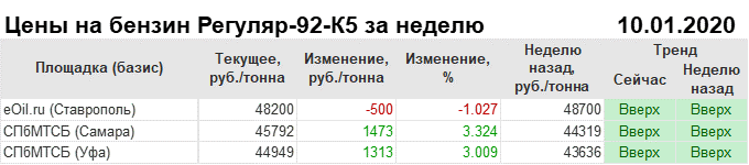 Цены на бензин Регуляр-92 класс 5, базис поставки Ставрополь, торгуемые на ЭТП eOil.ru, упали за неделю на 500 рубля до 48200 рубля за тонну. Тренд на рынке бензина Регуляр-92-К5 на ЭТП eOil.ru, базис поставки Ставрополь, бычий.