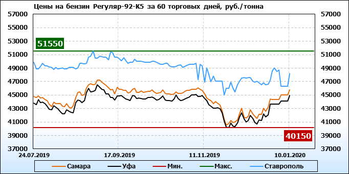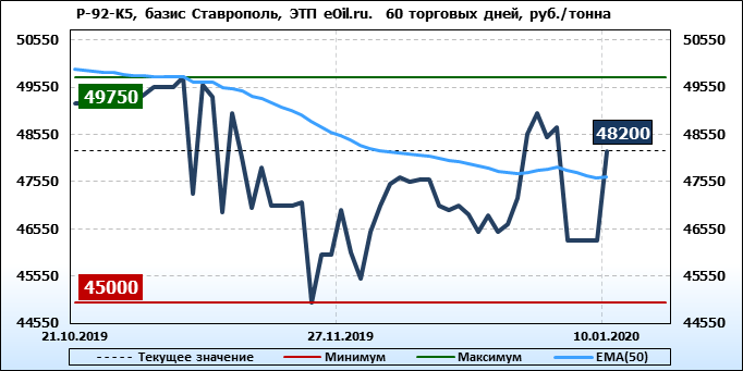 Цены на бензин. Р-92-К5, базис Ставрополь, ЭТП eOil.ru. Данные на 10.01.20