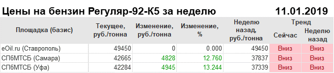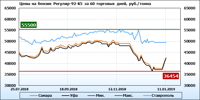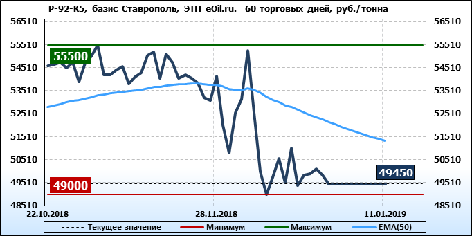 Цены на бензин. Р-92-К5, базис Ставрополь, ЭТП eOil.ru. Данные на 11.01.19